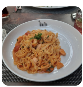Hinter Emilio steht nicht nur ein Name, sondern ein Gastgeber mit Leidenschaft. Statt einer langen Speisekarte gibt es eine kleine, wechselnde Auswahl: Antipasti, Pasta, frischer Fisch, ausgewähltes Fleisch und Dolce – je nachdem, was gerade Saison hat.